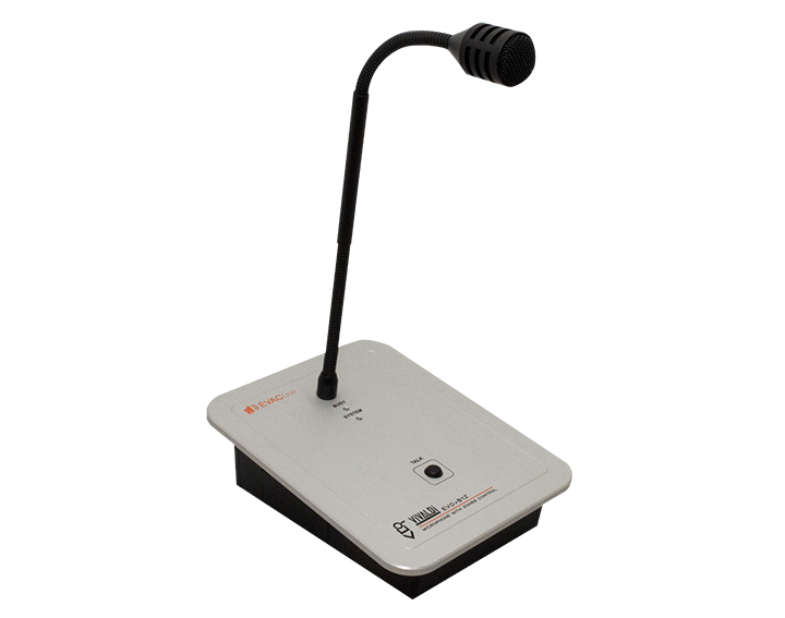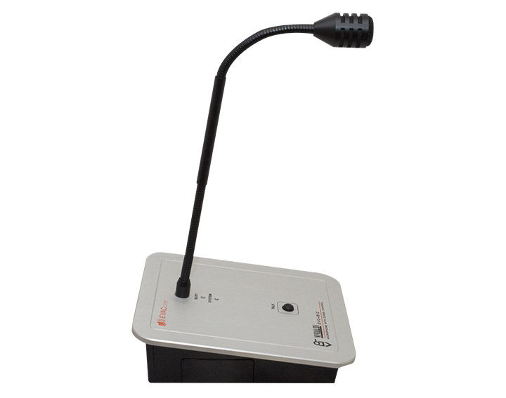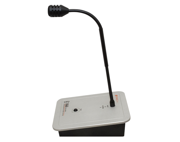Single desk microphone to 1 button for generals calls. Push-to-talk push button supplied.