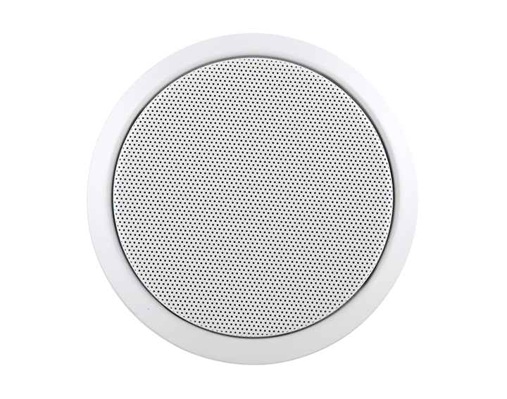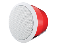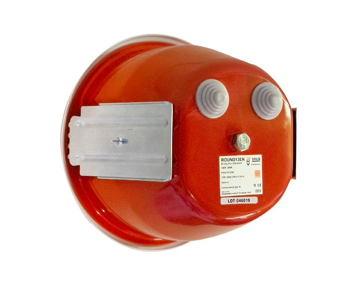 In-ceiling round speaker with steel flame-resistant cap, IP21, provided with firebreaker kit.