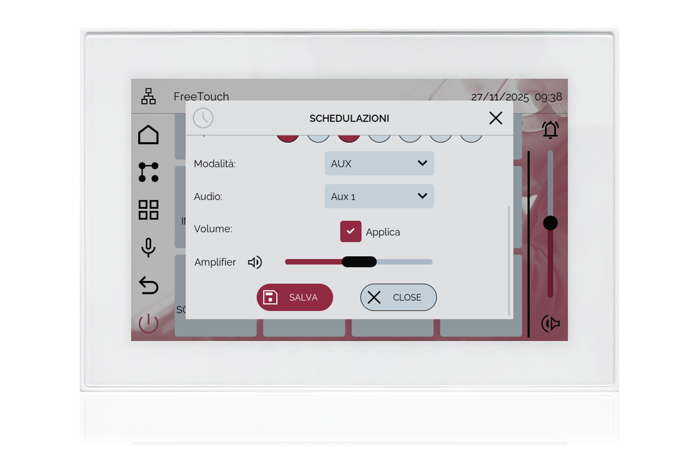 MULTIMEDIA audio all-in-one TOUCH device, with VIVALDI supervision and control APP or via Vivaldi Domotica iCONTROL4.0+, Vivaldi Domotica iCONTROL4.1L.
