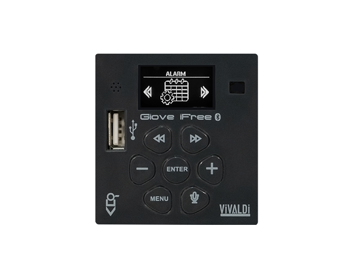Vivaldi Giove iFREEMK3.B (black color) In-wall stand alone amplifier for multiroom audio applications, with Bluetooth 5.0, DAB+, standard 60mm round or square in-wall electrical box, RS485 control port