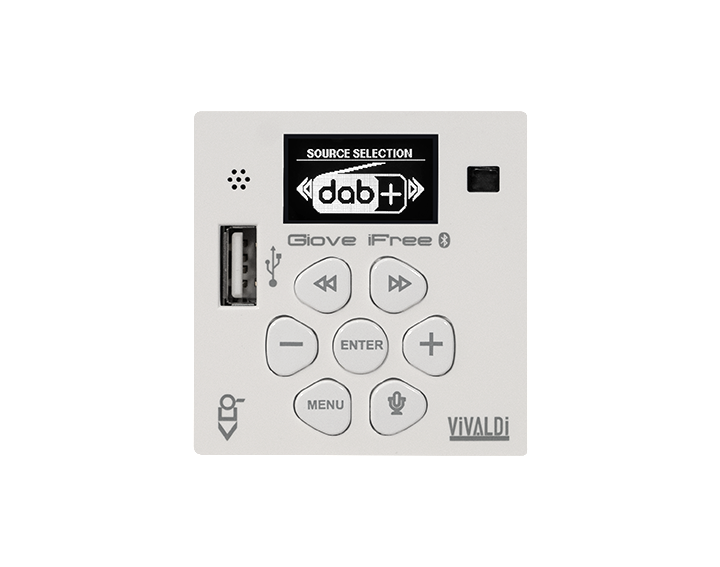 Vivaldi Giove iFREEMK3.W (white color) In-wall stand alone amplifier for multiroom audio applications, with Bluetooth 5.0, DAB+, standard 60mm round or square in-wall electrical box, RS485 control port