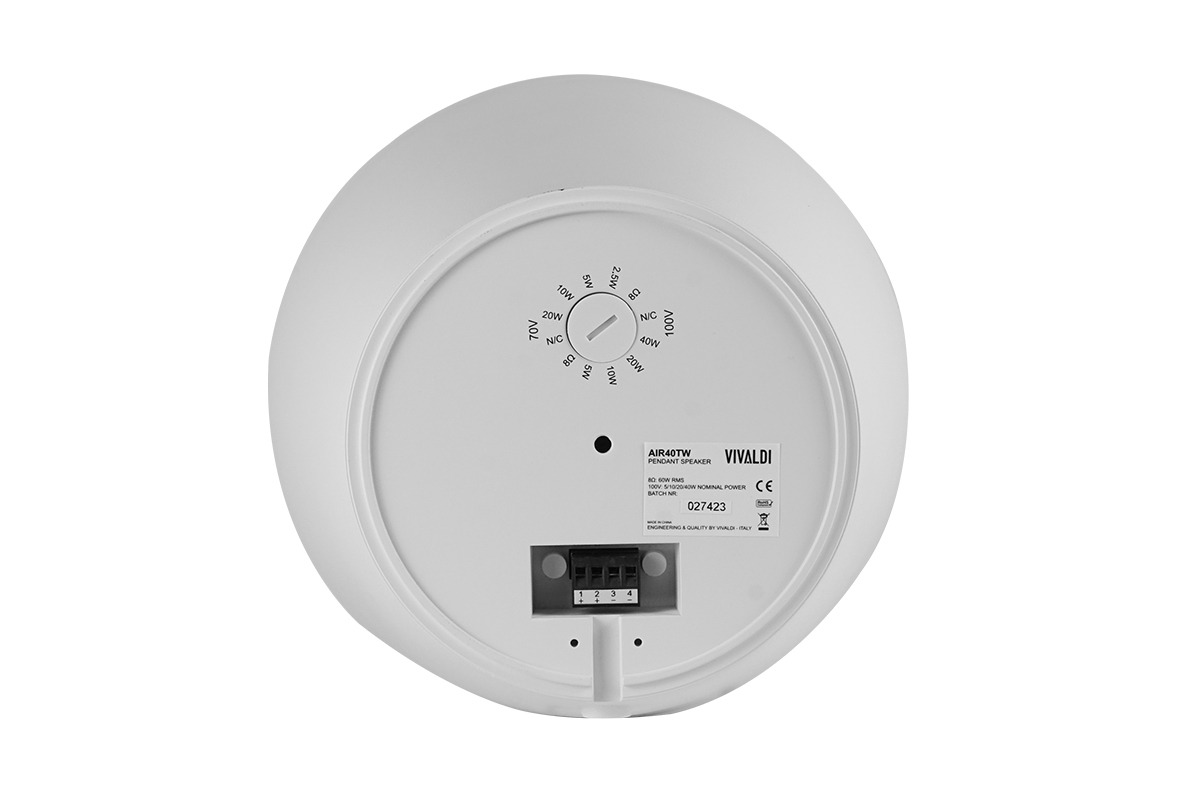 Power 70/100V: 5/10/20/40W nominal - 80W peak, max 105dB.