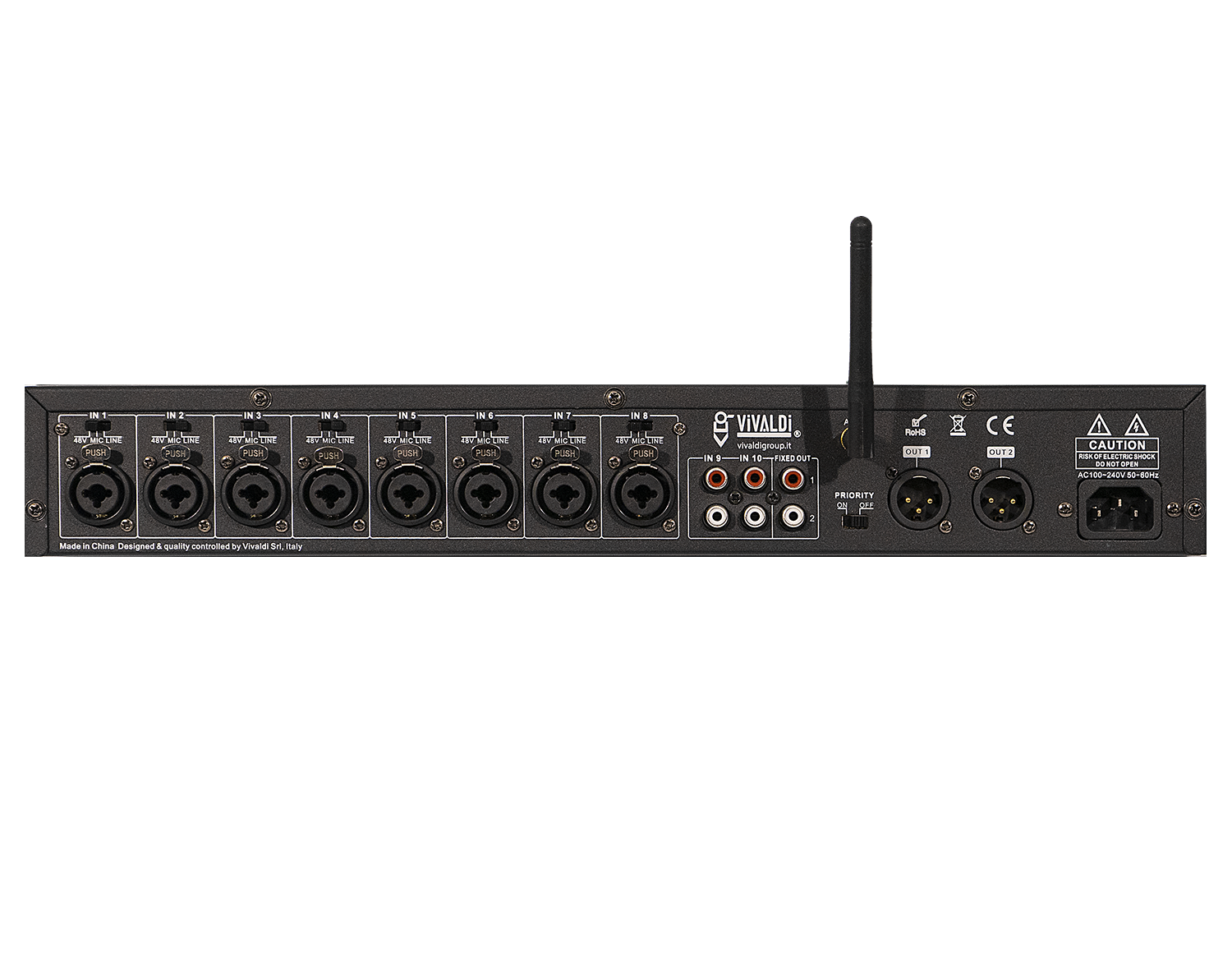 8 COMBO XLR/JACK inputs microphone level (-20dB) / Line (0dB) with activable Phantom 48.