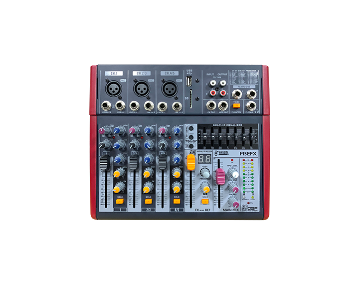 Multi-effect DSP unit 24bit integrated with 99 effects and and 6-LED level indicator.