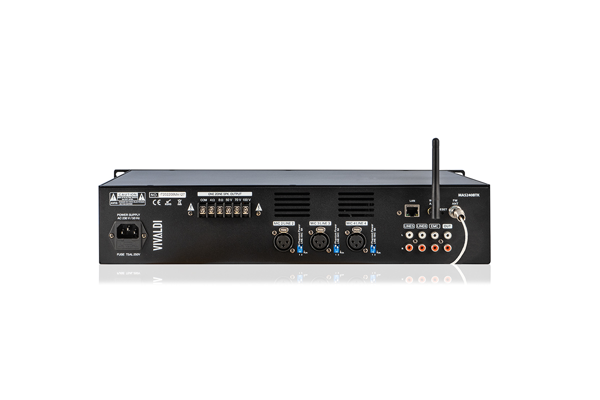 Vivaldi Ulisse MA5060BTK 100V mixer-amplifier with playerVivaldi Ulisse MA5120BTK 100V mixer-amplifier with player