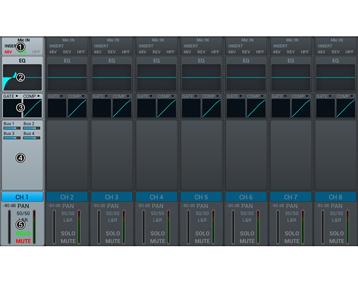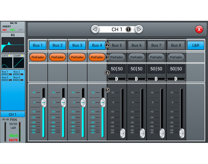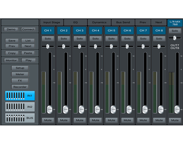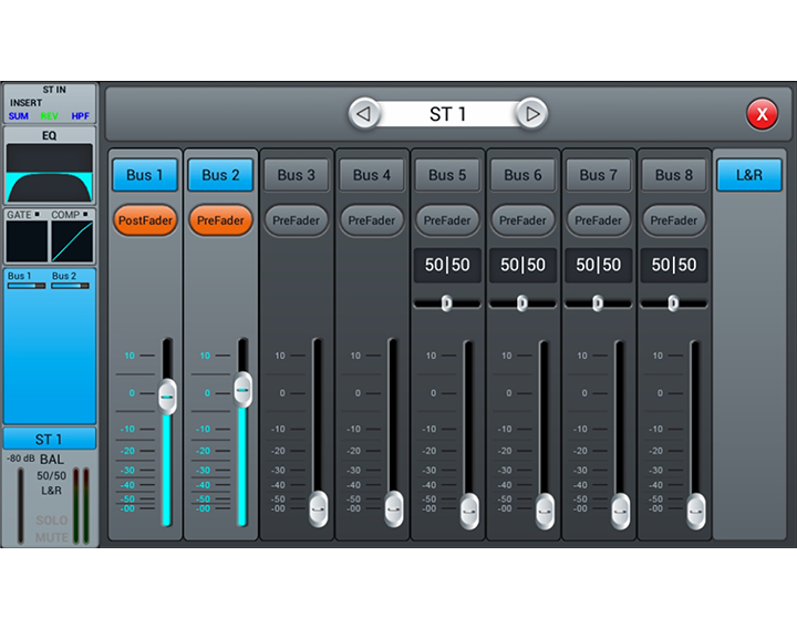 > BUS: L/R + 4 MONO + 4 ST + 1Monitor