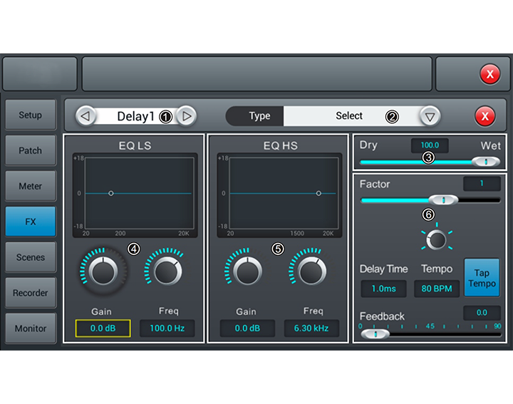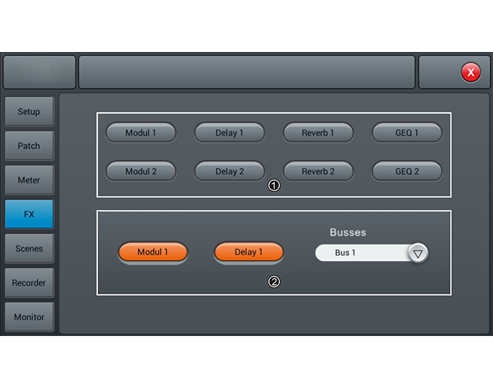 > 8 FX (2 modulation, 2 ECHO, 2 reverb, 2 GEQ)