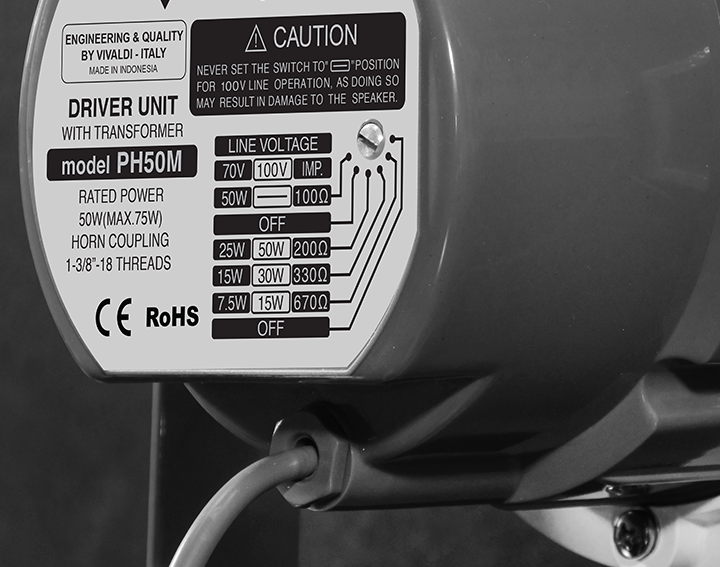 Nominal power: 15/30/50W. 100 peak, max 131dB.