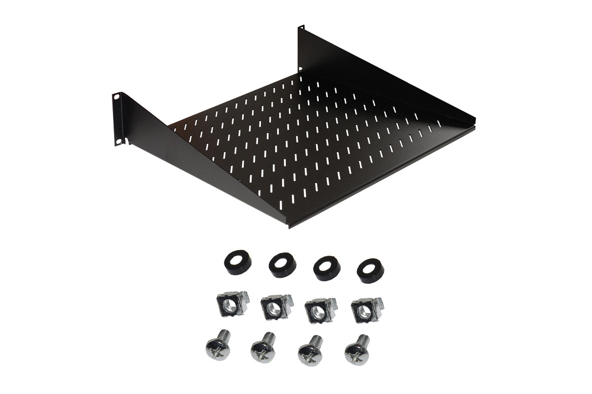Rack mount shelf fitting installation of rack equipment.
