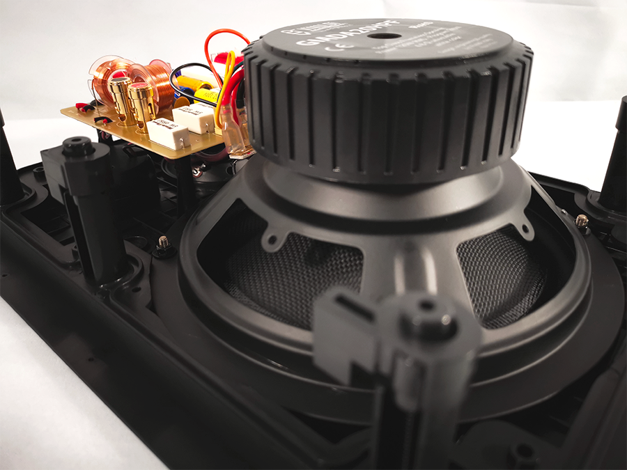 Tweeter a cupola 2,5 cm in neodimio, seta e titanio, orientabile (in casi di installazioni su posizioni non ottimali permette di dare direttività alle alte frequenze non penalizzando la qualità dell'ascolto).