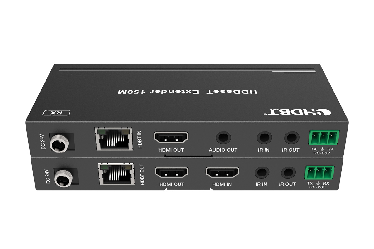HDBaseT da 150mt su singolo cavo cat 5e/6/7 con IR bidirezionale e RS-232.