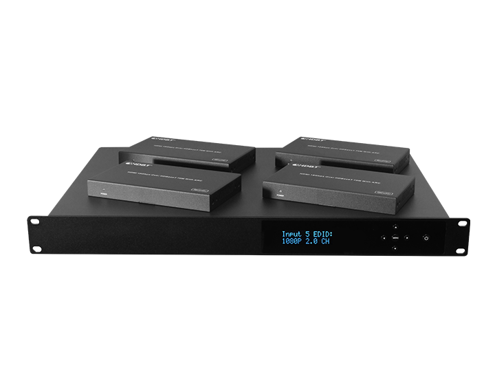 EDID configurabili. Gestione tramite pannello e display frontali, RS-232, IR e protocollo ethernet (LAN).